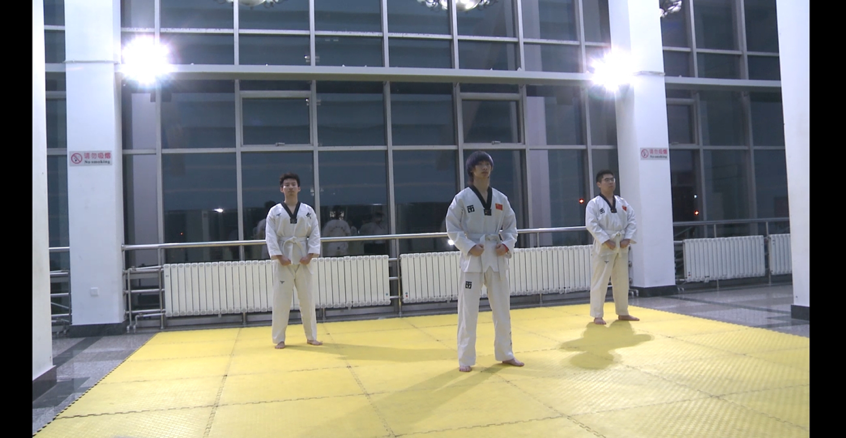 今年会武术队及跆拳道队获得如此丰厚的成绩和平日的训练活动与训练精神是分不开的。参加跆拳道比赛的队员在赛前集训期间每晚七点半准时开始训练。北风阻挡不住他们,日暮只会让他们更加严格且有效率地追求动作的标准程度,寒冷反而激发了他们战胜它的热情,转而促进了战友之间的凝聚力。新入队的队员压腿压不开,每天都抽出半个小时自觉地在宿舍压腿抻筋,协调性不好的同样有针对性地训练自己的协调性,有的女孩子性格内向,固定动作的发声还有所保留,显得忸怩,一个队友与她互相喊号,逐步地提高了音量,也提高了气势,增长了自信。还有的队员没有线上录制视频的经历,在镜头前放不开,经过自己对动作的熟练掌握和队友的鼓励,也在光影中展现了自己的英姿。