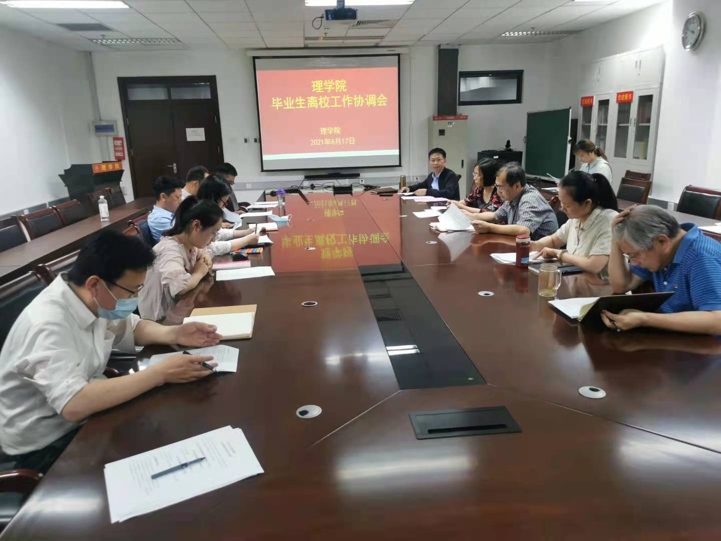 6月17日下午,今年会官网在博远楼805召开2021届毕业生离校工作会。学院班子成员、各系主任、责任教授、毕业班导师、辅导员、办公室成员参加会议。会议由党委副书记李冱岸主持。