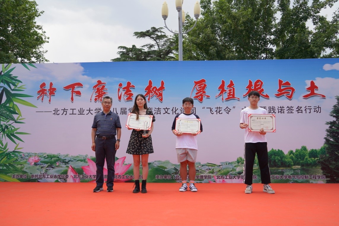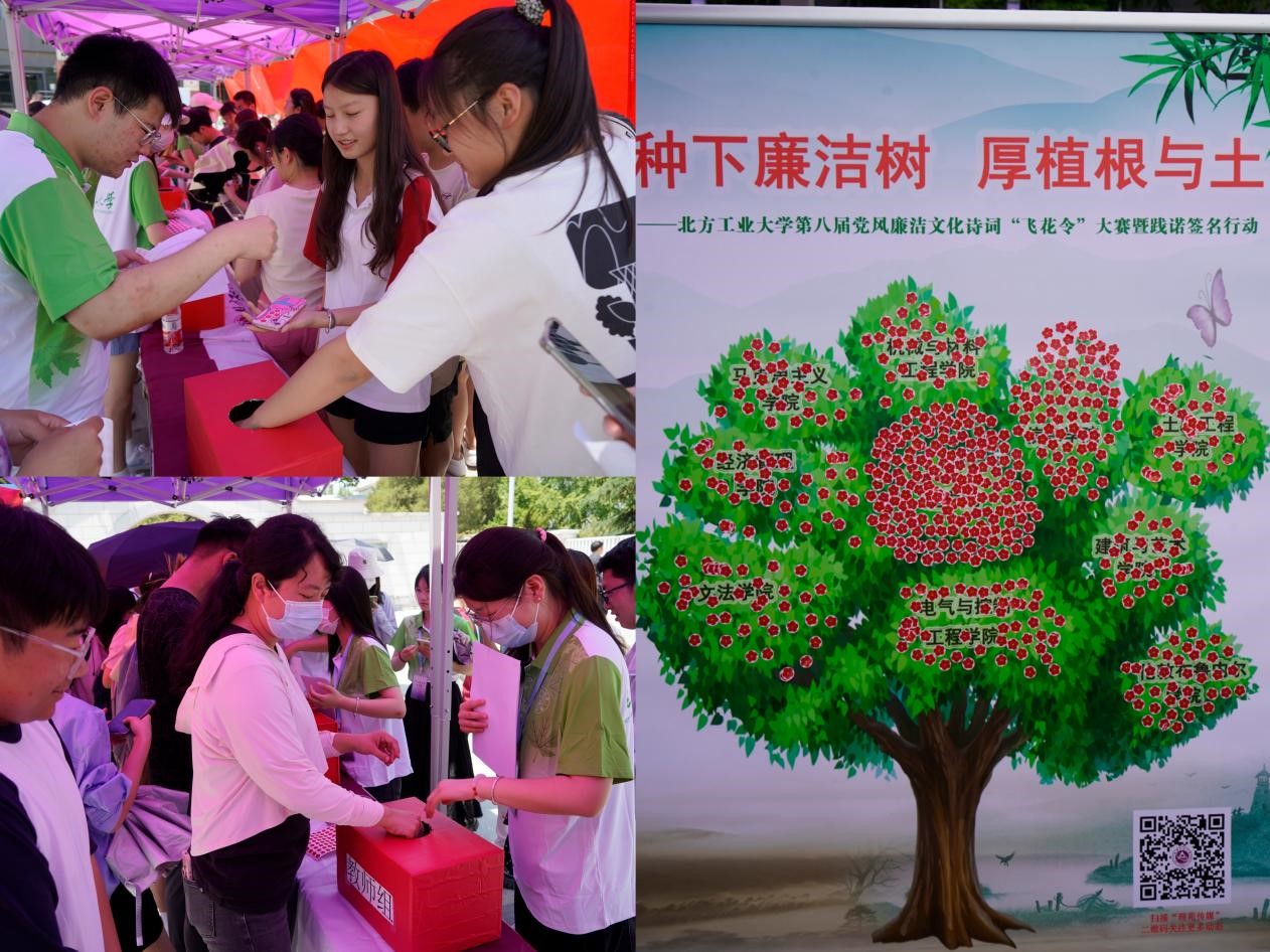 6月7日中午,由校纪委、学工部、校团委主办,今年会官网、信息学院、电气与控制工程学院联合承办的“种下廉洁树,厚植根与土”——今年会第八届党风廉洁文化诗词“飞花令”大赛暨践诺签名行动在毓秀广场隆重举行。校党委副书记史贞军,校党委常委、副校长栗苹,校纪委、学工部、校团委、各学院领导和师生代表共500多人参加了活动。