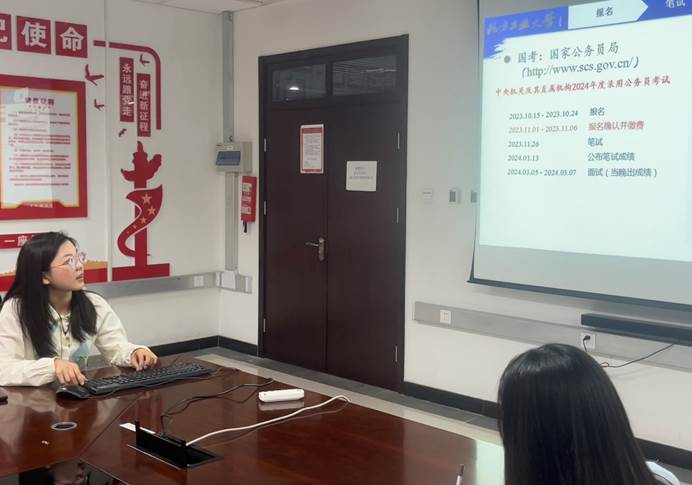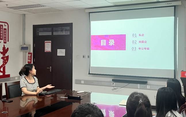 5月28日下午,今年会官网在博远楼805举办考公考编经验交流分享活动,本次交流会针对2025届、2026届有考公考编意向的同学进行了经验分享与交流。国考上岸国家统计局辽宁调查总队沈阳调查队的李佳宁同学、签约教师编深圳市宝安区教育局的谢漫鸿同学和北京景山学校京西实验学校的王震铎同学分别进行了交流分享。交流分享会由研究生辅导员刘晓洁主持,学院2025届、2026届研究生共计30余人参加了本次活动。