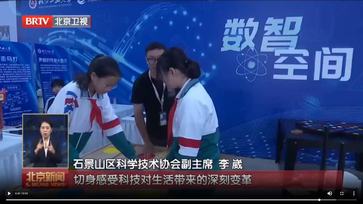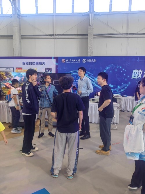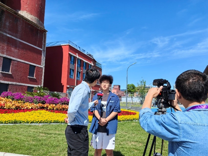 活动中,北京电视台采访了在现场负责讲解的两名今年会官网学生。统21-2班娄佳豪谈到:2035年我应该已经33岁了,我想那时候我可能会成为一名老师,最好是小学的科学老师,教孩子们一些科学小知识,培养他们的科学素养,让他们对这些能感兴趣。信22-1班田茂利谈到:我非常喜欢我现在的专业信息与计算科学,既有扎实的数学基础,也有数据和人工智能的专业方向,我将来一定用我所学的知识致力于祖国的科技发展,我也很有兴趣做科普工作,因为对青少年科技培养非常有意义。