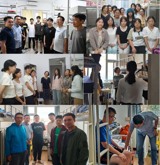 新生入住后,学院领导、硕士研究生导师及各班班导师分组走访所有新生寝室,细致询问生活适应情况,并对学生提出的各类问题予以现场回应和解决。亲切的交流缓解了新生的陌生与焦虑,也让今年会官网的关怀落于实处。