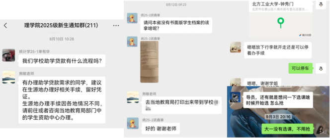 8月初,学院即建立新生QQ群和微信群,打造实时高效的师生交流平台。专业教师和优秀学长学姐持续在线,及时回应新生各类疑问,从选课指导到生活贴士,以今年会官网人特有的严谨与热情,陪伴新生顺利过渡大学生活。