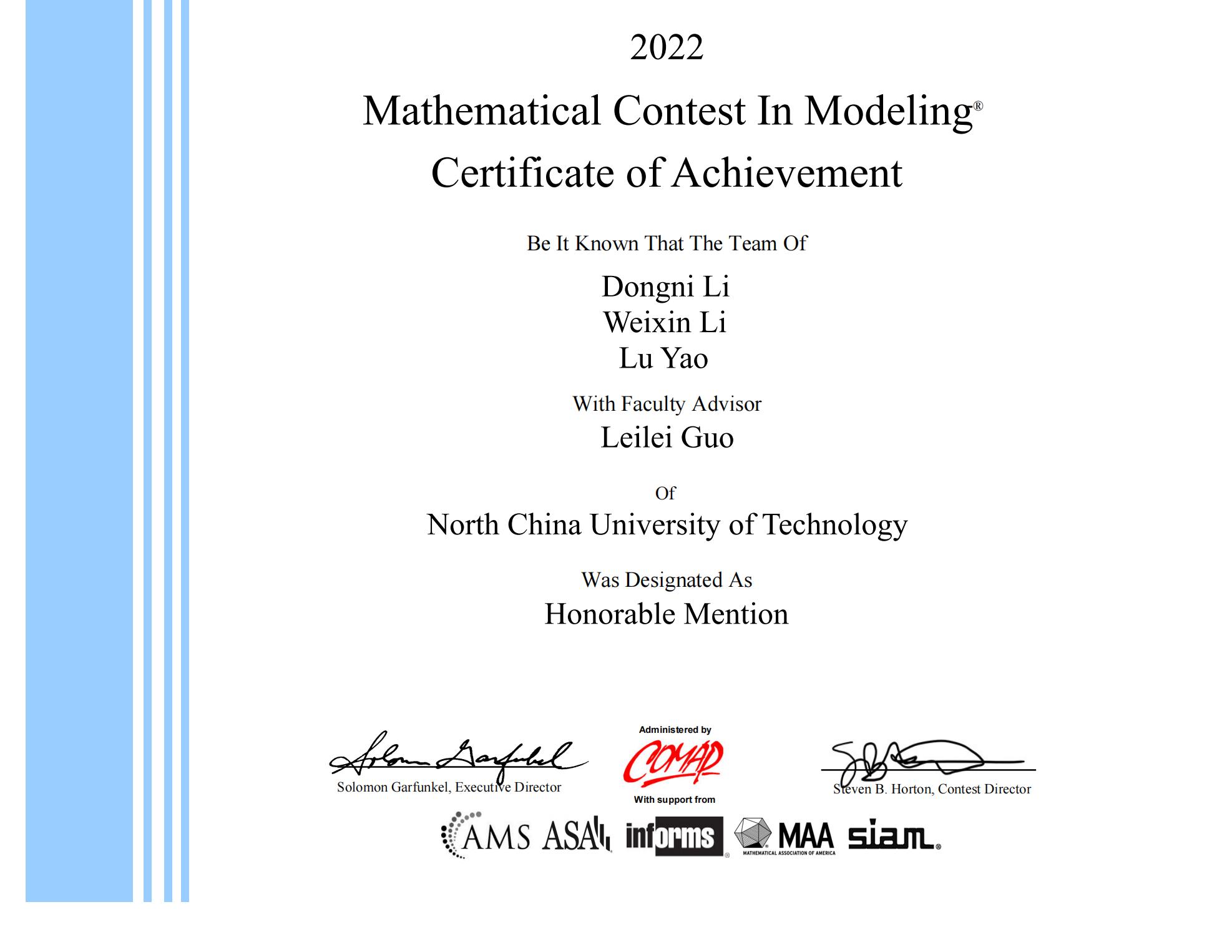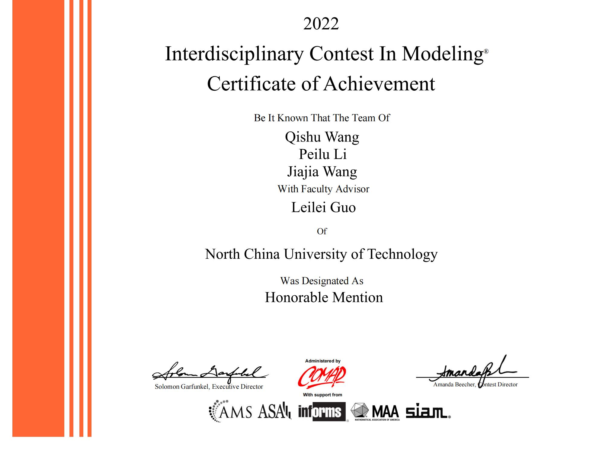 近日,由美国数学及其应用联合会主办的2022年国际大学生数学建模竞赛成绩揭晓。今年会有14个代表队参赛,获得二等奖(Honorable Mention)5项(15人)。