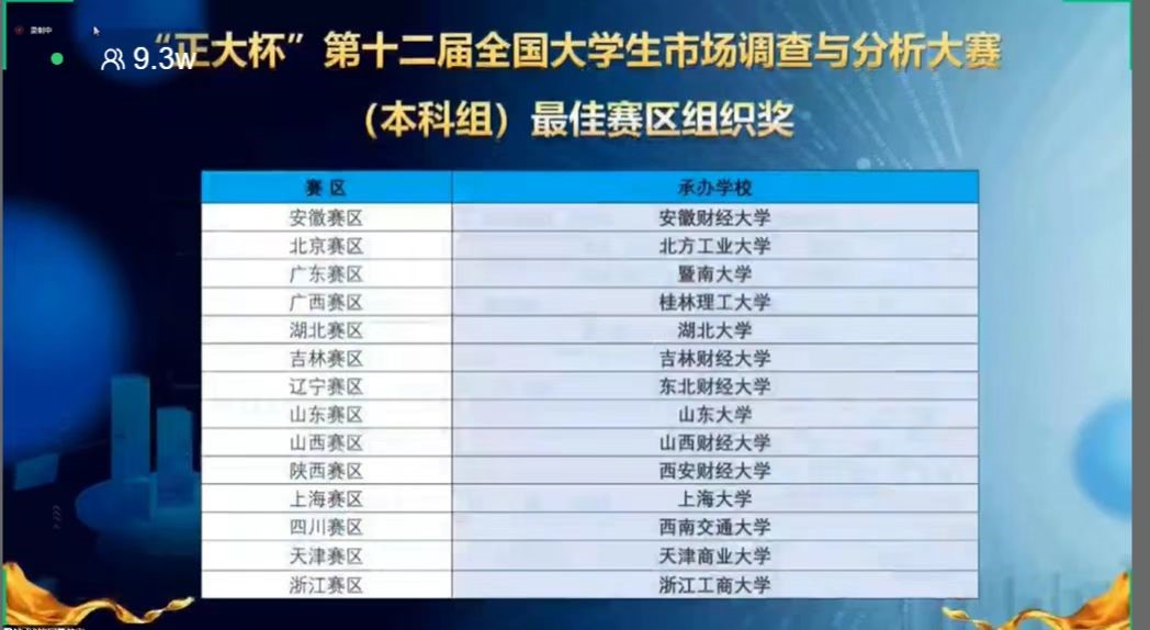 5月28日至29日,由中国商业统计学会主办、湖北省江汉大学承办的“正大杯”第十二届全国大学生市场调查与分析大赛总决赛,采用腾讯会议线上举行。今年会选手在比赛中获得全国二等奖1项,三等奖2项。