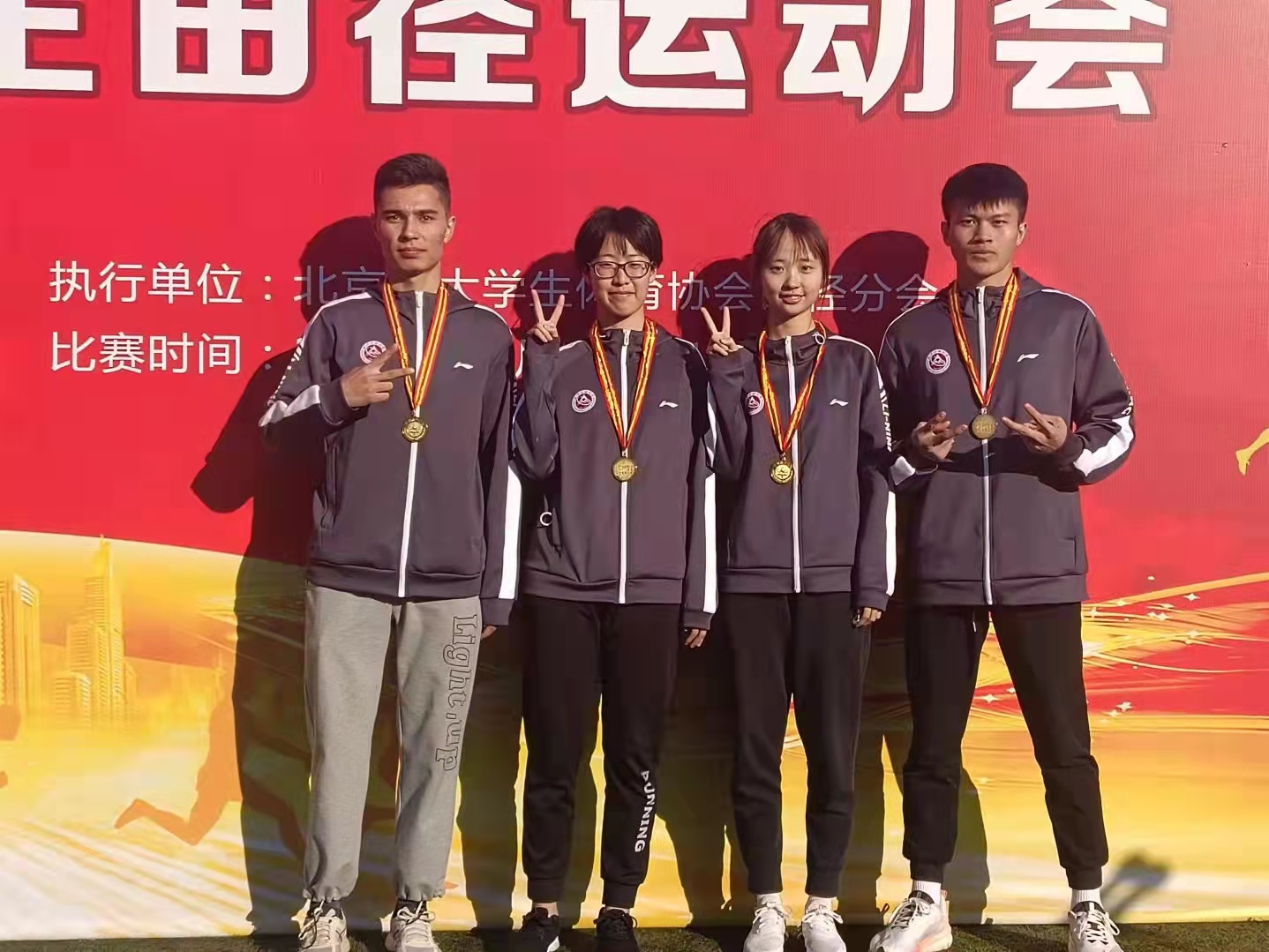 今年会运动员在此次田径运动会上顽强拼搏,奋勇争先,捷报频传。阿巴斯获得了男子400米金牌、800米银牌;李佩璐获得了女子100米、200米金牌;邢一晨获得男子110米栏金牌、200米第五;王卓然获得100米栏金牌;贾若寒获得男子铅球金牌;叶儿获得男子全能第六名;宋汉洋获得男子跳高第七名;刘志嘉获得男子三级跳远第七名;李卓然获得女子跳远第七名;王欣懿获得女子全能第八名;李心获得男子110米栏第七名。阿巴斯、路帆、邢一晨、巴力恒组成的男子4×100米组合获得金牌;路帆、李佩璐、阿巴斯、李雪丽组成的混合4×400米组合获得了金牌;李佩璐、李雪丽、李卓然、王卓然组成的女子4×100米组合获得了银牌。