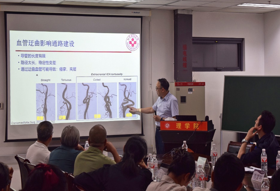 在主题报告环节,首都医科大学附属北京朝阳医院神经外科主任和朝阳医院怀柔医院院长汪阳教授以“脑血管迂曲与介入治疗”为题,分享了他对于脑血管疾病诊治以及临床基础研究的学术经验。在场诸多专家学者就汪阳院长提出的研究问题展开热烈的讨论,汪阳院长认真回复并积极参与学术思考交流,将会场学术氛围带向高潮。