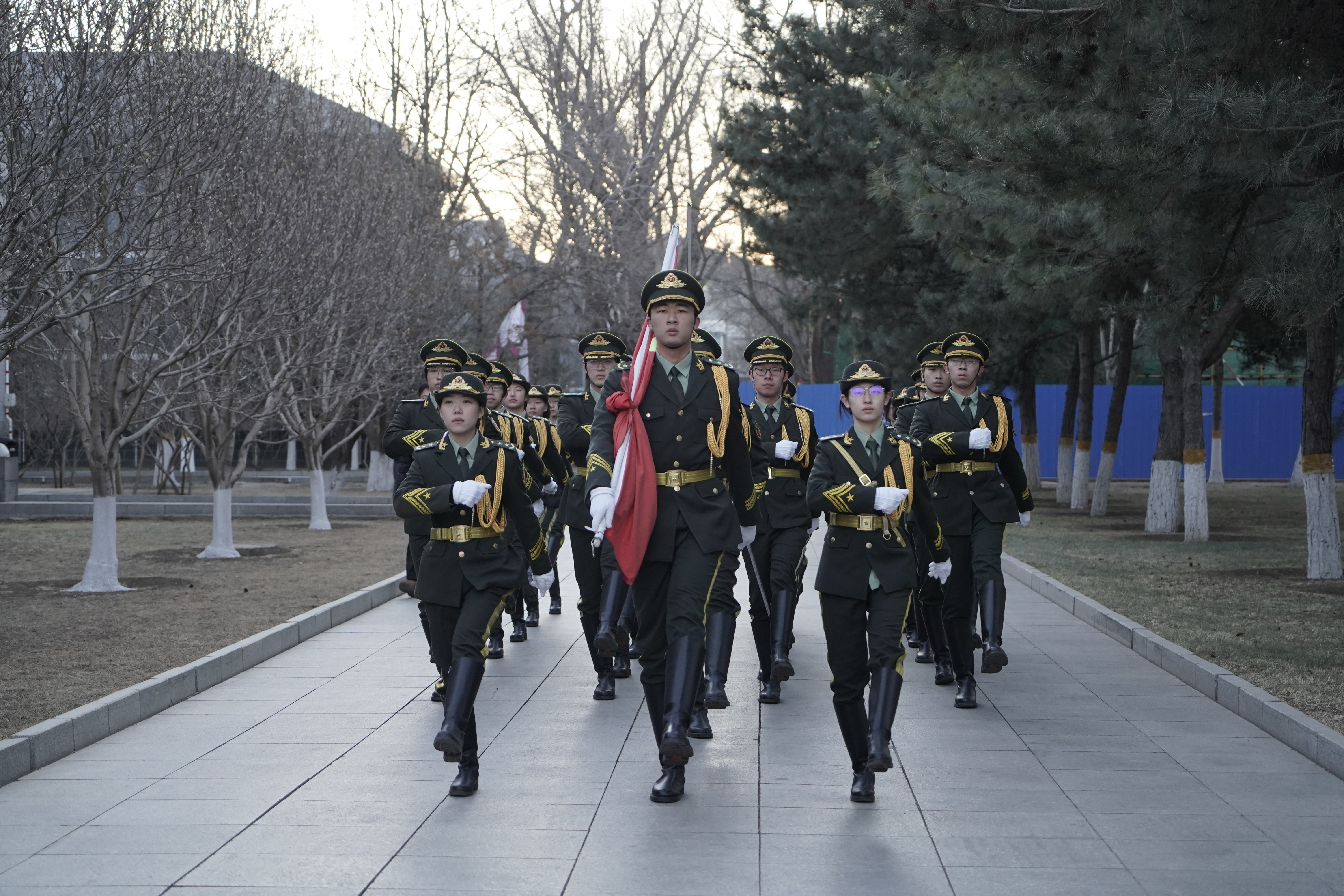 晨光熹微的毓秀园里,激昂口令声响起,护旗方队步伐坚定。国歌声中,五星红旗缓缓升起,全体师生肃立,高唱国歌,行注目礼。