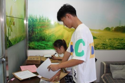 “你乘风而来,我蓄势待发”,8月22日,学院老师以及迎新志愿者已经蓄势待发,做好了开学报道前所有准备工作。师生一齐布置迎新报到现场,调设备、贴路标、挂横幅,志愿者们对新生档案袋进行分类整理,放置好饭卡、学生证、校徽与院服、体检单等,办公室老师还特意打印出每名新生的课程表,为“萌新”的到来做好一切准备。