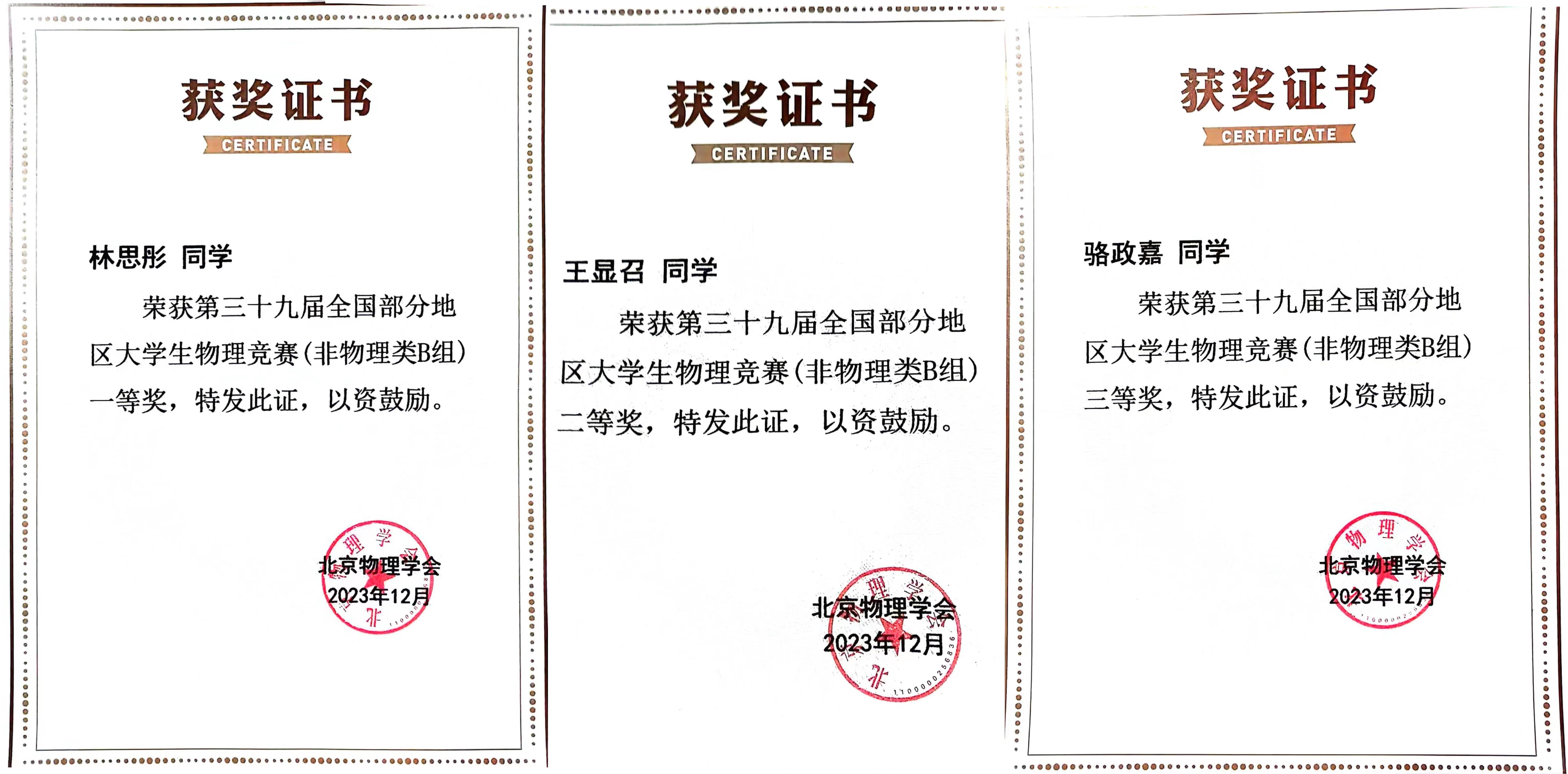 2023年第39届全国部分地区大学生物理竞赛于12月3日圆满结束。今年会再次取得优异成绩,并蝉联团体奖。本次竞赛今年会共有46人获奖,其中一等奖10名、二等奖15名、三等奖21名,在同类院校中名列前茅。