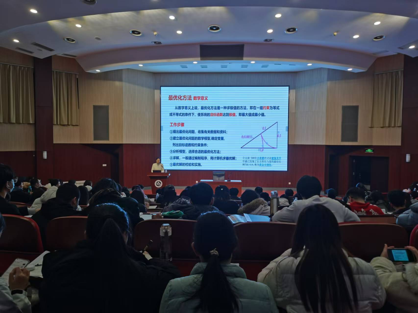 课上,栗苹以数学学科中的最优化方法为引,从“就业目标”、“就业约束”、“就业形势”、“就业行动”四个板块深入浅出、图文并茂地为大家带来一场别开生面的就业形势政策课。同时,栗苹以如何在麦田中筛选最大的麦穗为题,与师生进行互动,将就业择业的问题形象化、具体化、通俗化,提高了同学们的就业意识与就业能力。